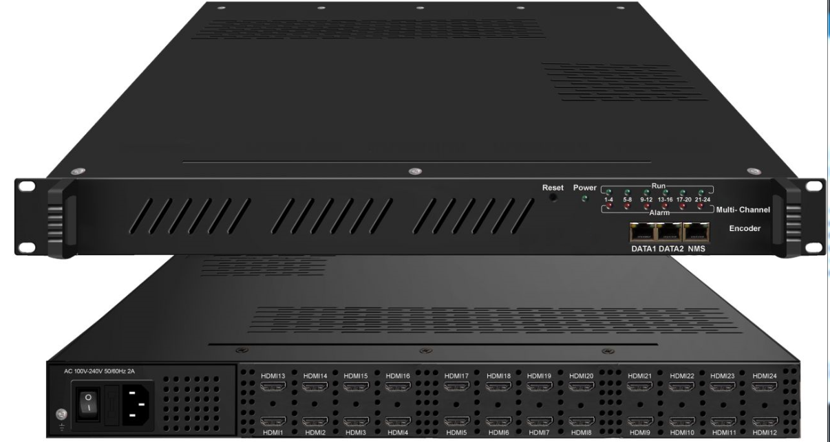 * 16 /20/24× HDMI inputs with 16 /20/24 SPTS or 1 MPTS output through Data 1 or Data 2