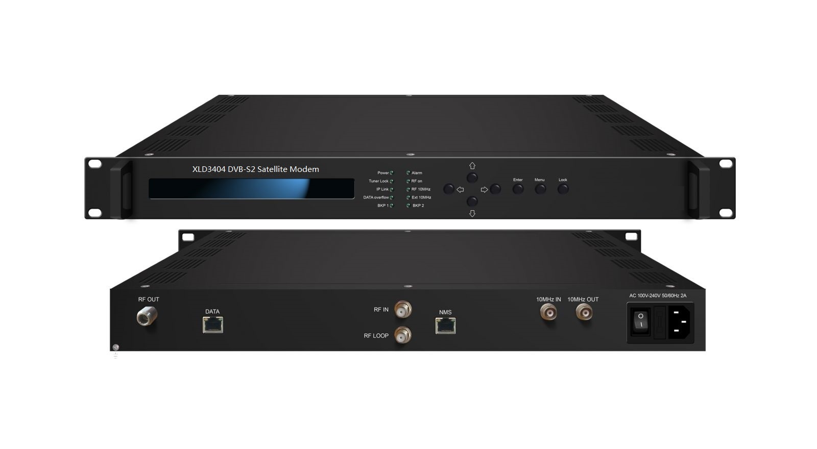 The Xielide XLD3404 satellite modem is a two-way, high throughput DVB-S2 modem supporting a wide range of IP service. The modem is designed for data applications over satellite in full compliance with DVB-S2 standard, next to the legacy DVB-S standard in order to achieve barrier-breaking efficiency. With superior TCP acceleration, NDS3404 can easily deal with high speed links and heavy traffic requirements.