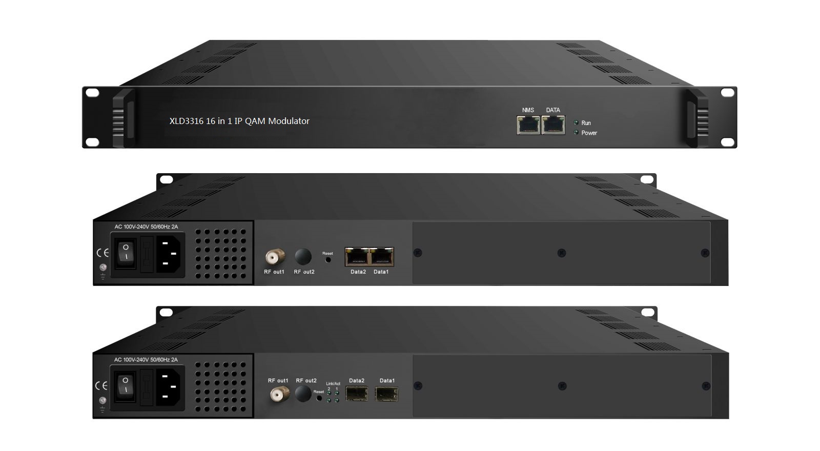 XLD3316 16 in 1 IP QAM modulator is the latest generational Mux-scrambling-modulating all-in-one device developed by Xielide. It has 16 multiplexing channels, 16 scrambling channels and 16 QAM (DVB-C) modulating channels, and supports maximum 512 IP input through the 3 GE ports and 16 non-adjacent carriers (50MHz~960MHz) output through the RF output interface. The device is also characterized with high integrated level, high performance and low cost. This is very adaptable to newly generation CATV broadcasting system.