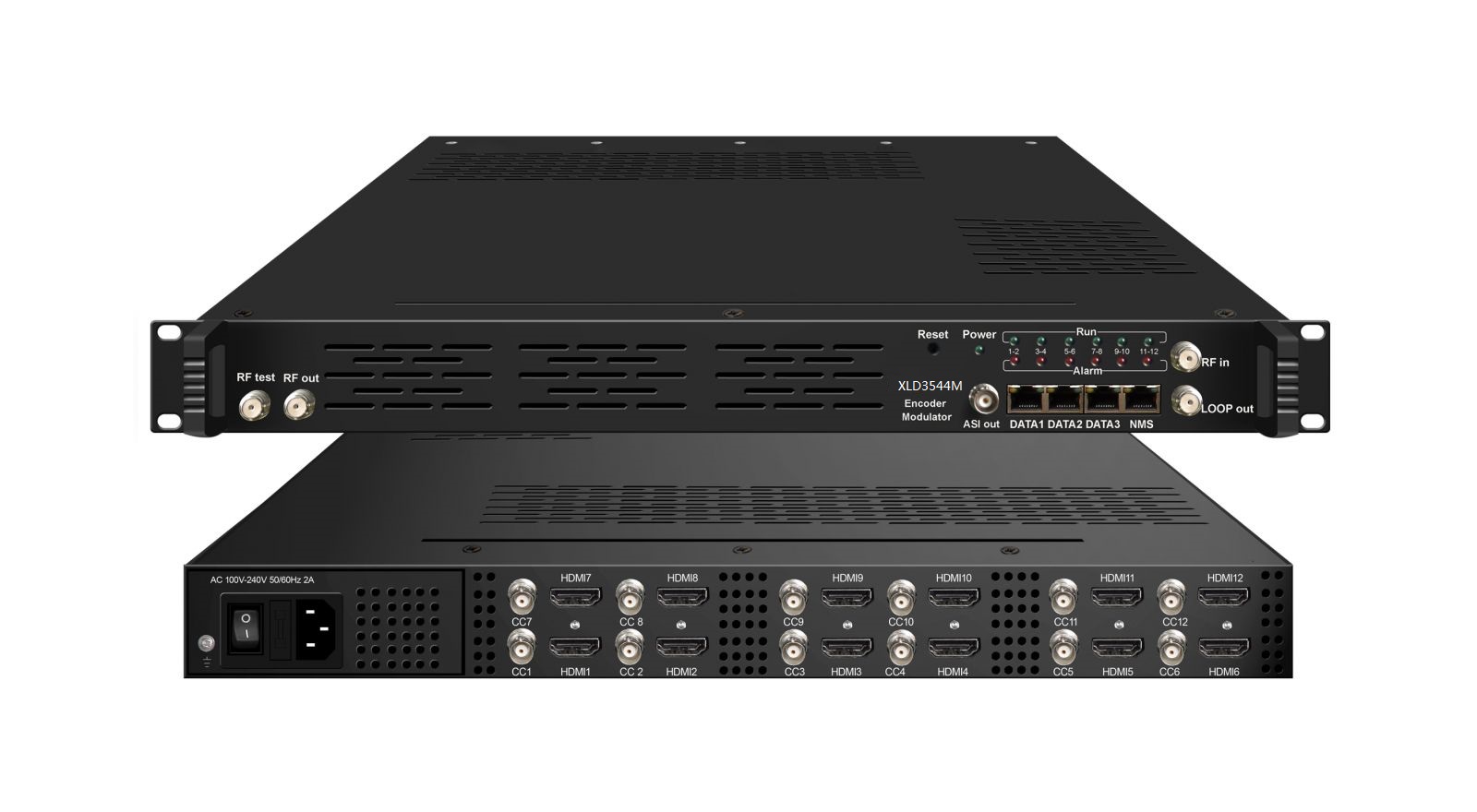 XLD3544M HD encoder modulator is a professional high integration device which includes encoding, multiplexing, scrambling and modulating. It supports 12 HDMI and 12 CC inputs, one DVB-C (ATSC optional) tuner input and 256 IP input through Data1 (GE) port. It also supports DVB-C RF out with 16 non-adjacent carries or DVB-T/ATSC RF out with 8 non-adjacent carriers or ISDB-T RF out with 6 non-adjacent carriers and supports 16 MPTS as mirror of 16 carriers or 8 MPTS as mirror of 8 carriers or 6 MPTS as mirror of 6 carriers through Data2 (GE) output port. To meet customers’ various requirements, it is also equipped with 1 ASI output as mirror of one of RF output carriers. This full function device makes it ideal for small CATV head end system.
