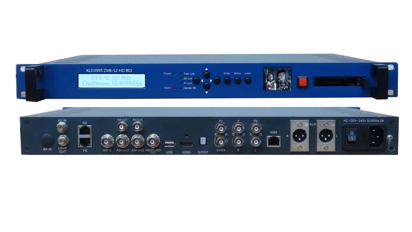 XLD397X/XLD399X HD IRD is Xielide’s new design IRD with LCD video monitor equipped on the front panel. It can receive signals from tuner (DVB-C, DVB-T/T2, DVB-S/S2, DMB-T, ISDB-T, and ATSC-T optional), ASI and IP sources. After multiplexing and de-encryption with CAM module, it gives content out through ASI, IP as well as various video/audio interfaces. Its video/audio outputs support professional HD/SD-SDI, YPbPr, HDMI, stereo balanced audio, stereo unbalanced audio and S/PDIF digital audio and CVBS, which can greatly satisfy the professional users’ needs. With the CAM/CI slot, XLD397X/XLD399X can support one channel (Tuner, ASI or IP) de-scrambling and give transparent signal output. User can operate the device by using front panel LCD or NMS/SNMP software or Webpage-based NMS. Moreover, users can choose to have an optional ASI output which can pass through the encryption data source directly from tuner.
